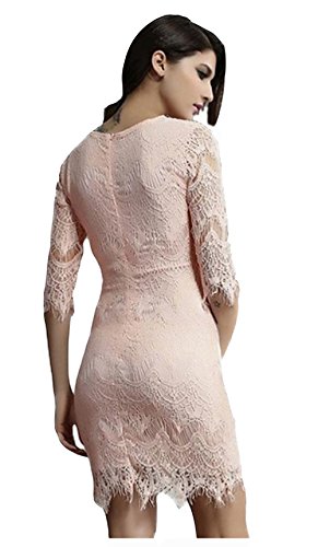 NuoReel Women's Allover Lace Three Fourth Sleeves Dress Small Size Pink