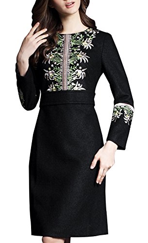 OSY Women's Winter Slim Retro Embroidery Wool Long Sleeves Midi Length Casual Dresses S BlackASIN : B00PAON94A