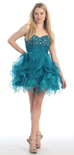 Strapless Cocktail Party Short Prom Ruffled Dress #906 (12, Teal)ASIN : B0090VTE48