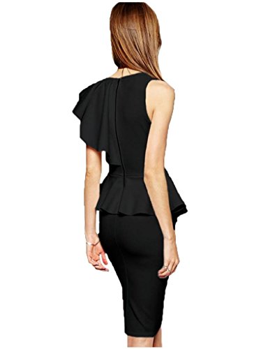 NuoReel Women's Ruffle Bonded Texture Body-conscious Dress Medium Size BlackASIN : B00ONTFAGI