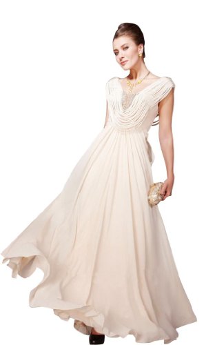 Passat Women's Beading Strapless Peacock Prom Dress Size US8 Color Champagne