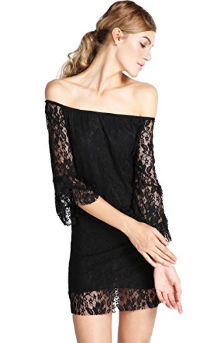 ACEVOG® Women's Lace Off-shoulder Mini Dress 2 ColorsASIN : B00N7B0I1K