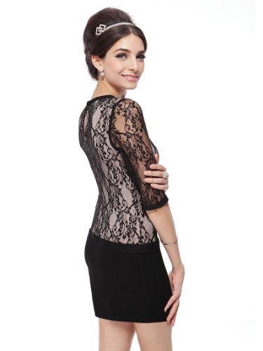 Description : 3/4 sleeve summer mini dress.Not padded.Peephole at back neck and black lace overlay enhances sexiness of dress.Concealed zipper up the back.Lining, low stretch.The sleeve length of size 8-18 are all 38cm-40cm.The shoulder across of size 8-12 are 35cm-38cm,size 14-18 are 38cm-40cm.The sleeve opening of size 8-12 are 25cm-28cm,size 14-18 are 28cm-30cm