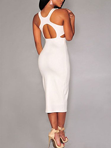 Graceful Ladies' White Sleeveless Cut Out Waist Mid length Stretchy Tight Dress (White)