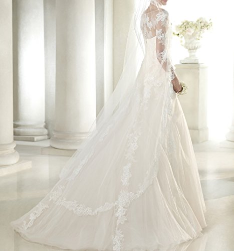 Harshori Womens High Neck Long Lace Sleeves Applique Wedding Dresses 4 Ivory