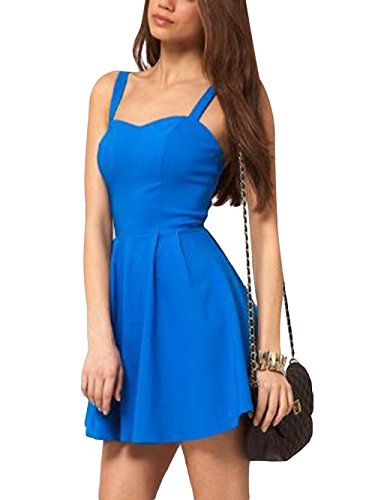 MISHI Women's New Summer Sexy Spaghetti Strap Backless Party Mini Dress Blue XL