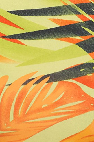 - Description: Tropical print, mock turtle neck, long sleeve, knee length,?Dress with front cutouts and M-slit