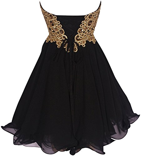 Medon's Sweetheart Applique Empire Style Chiffon Prom Dress (US6, black-gold)