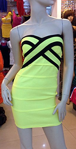 Stretch Cotton Sexy Stripes Yellow Strapless Party Dresses for Women
