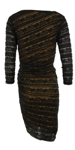 Studio M Women's Cowl Neck Ruched Lace Sheath Dress (M, Black/Nude)
