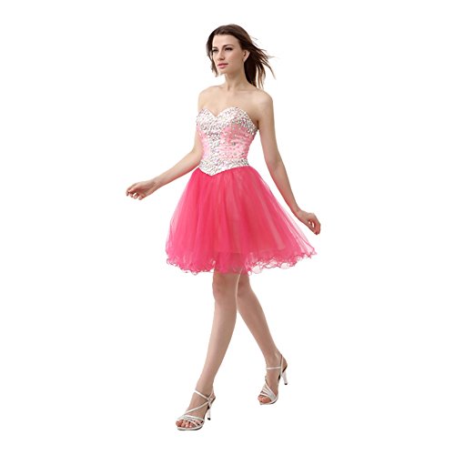 Engerla Women's Sweetheart Rhinestones Bodice Short Tull Cocktail Dresess Party Gown Corset Red US4