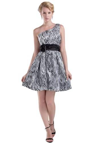 Graceful Fashion Womens One Shoulder A-line Leopard Short High Waist Dress 4514 16W Black and White