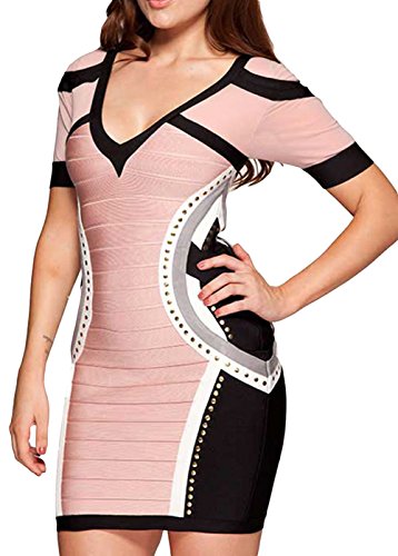 Description : Gorgeous celebrity style bandage dress as seen on celebrities, this Individual Patchwork Studded Bandage Dress stylized your body and make you look beautiful, stylish and light on weight, you will not regret to buy it! It's new, never doubt that you will love it, other sexy in fashion bandage dresses also cheap on stylebek!