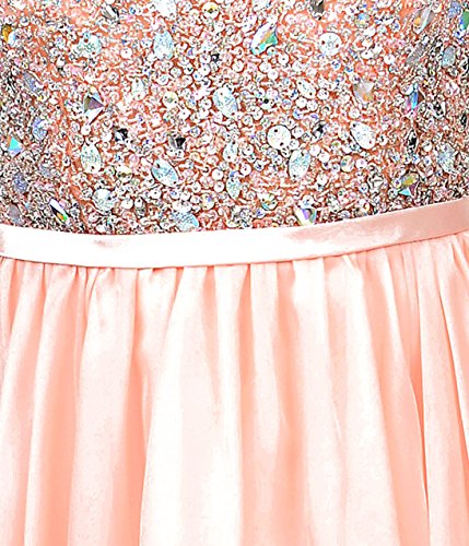 Peach Illusion Rhinestone Beaded Chiffon Short Dress Prom 2015